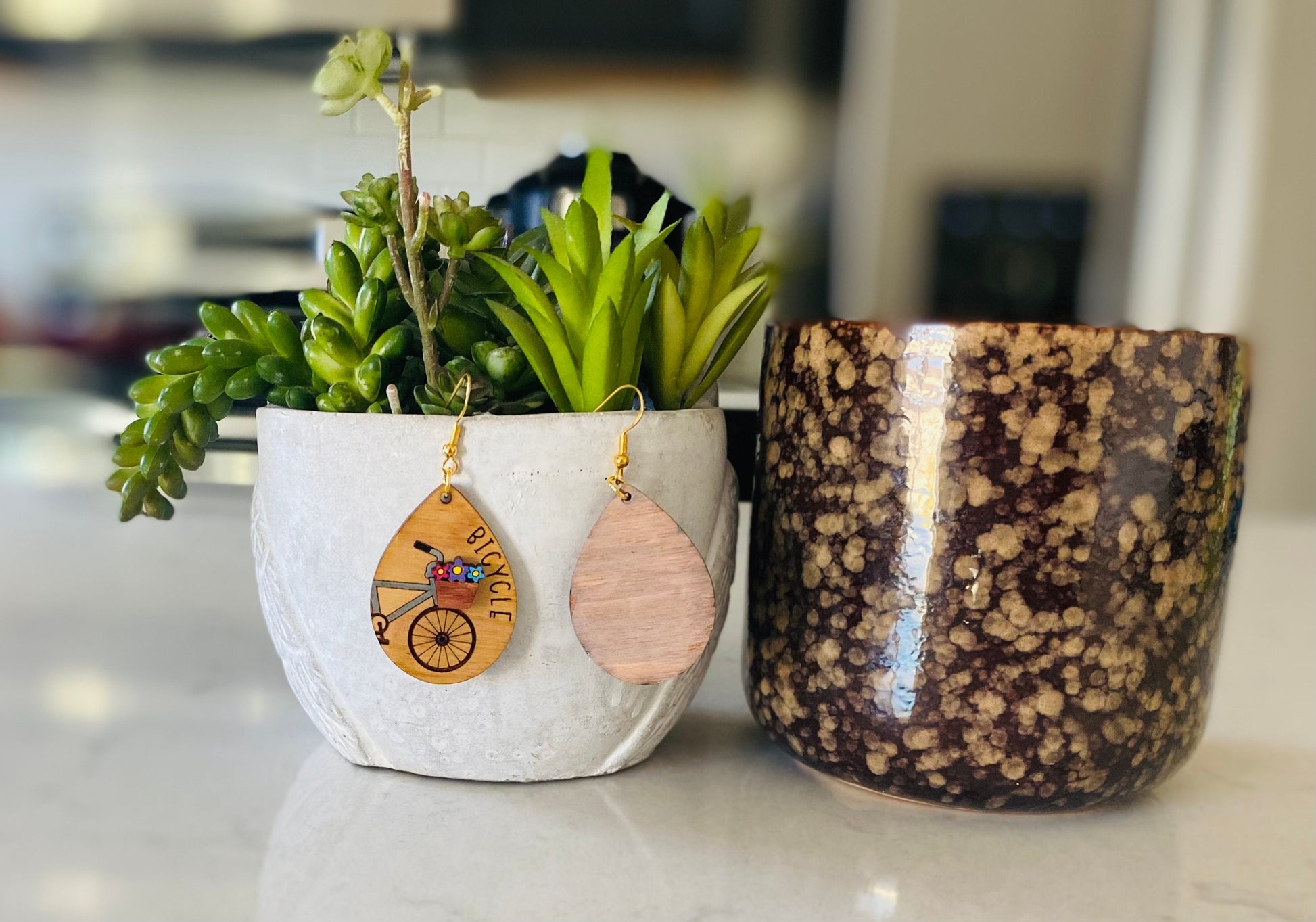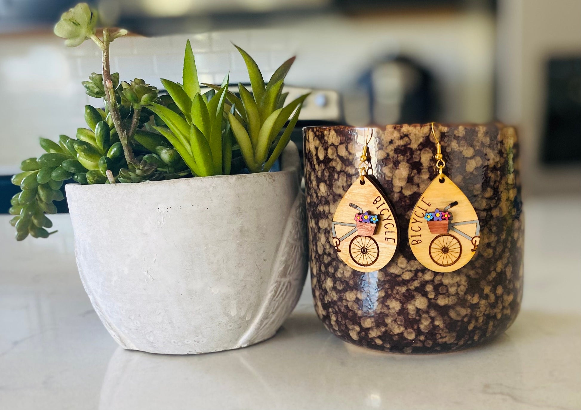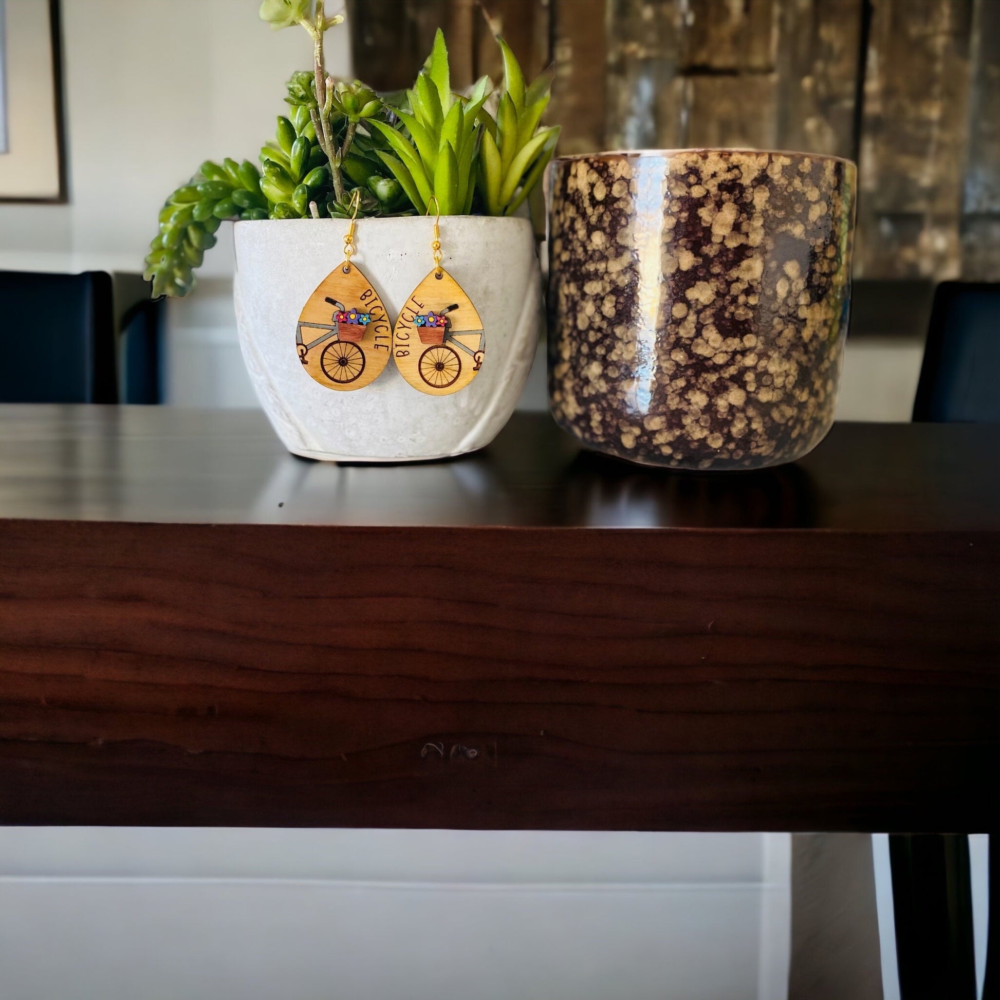 Celebrate the joy of spring and summer with these Birchwood Laser Cut Bicycle Tear Drop Earrings.