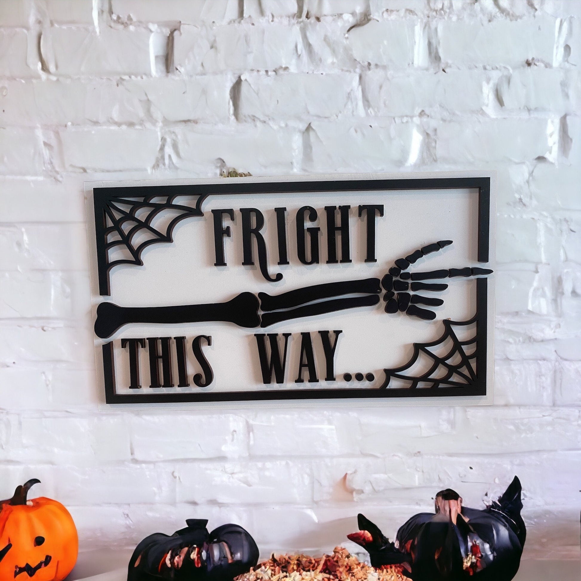 Don't let Halloween creep by without embracing the darkness! Illuminate your surroundings with our Fright This Way wooden sign. Order now and let the specters guide you to an unforgettable Halloween experience! šš»š·ļø