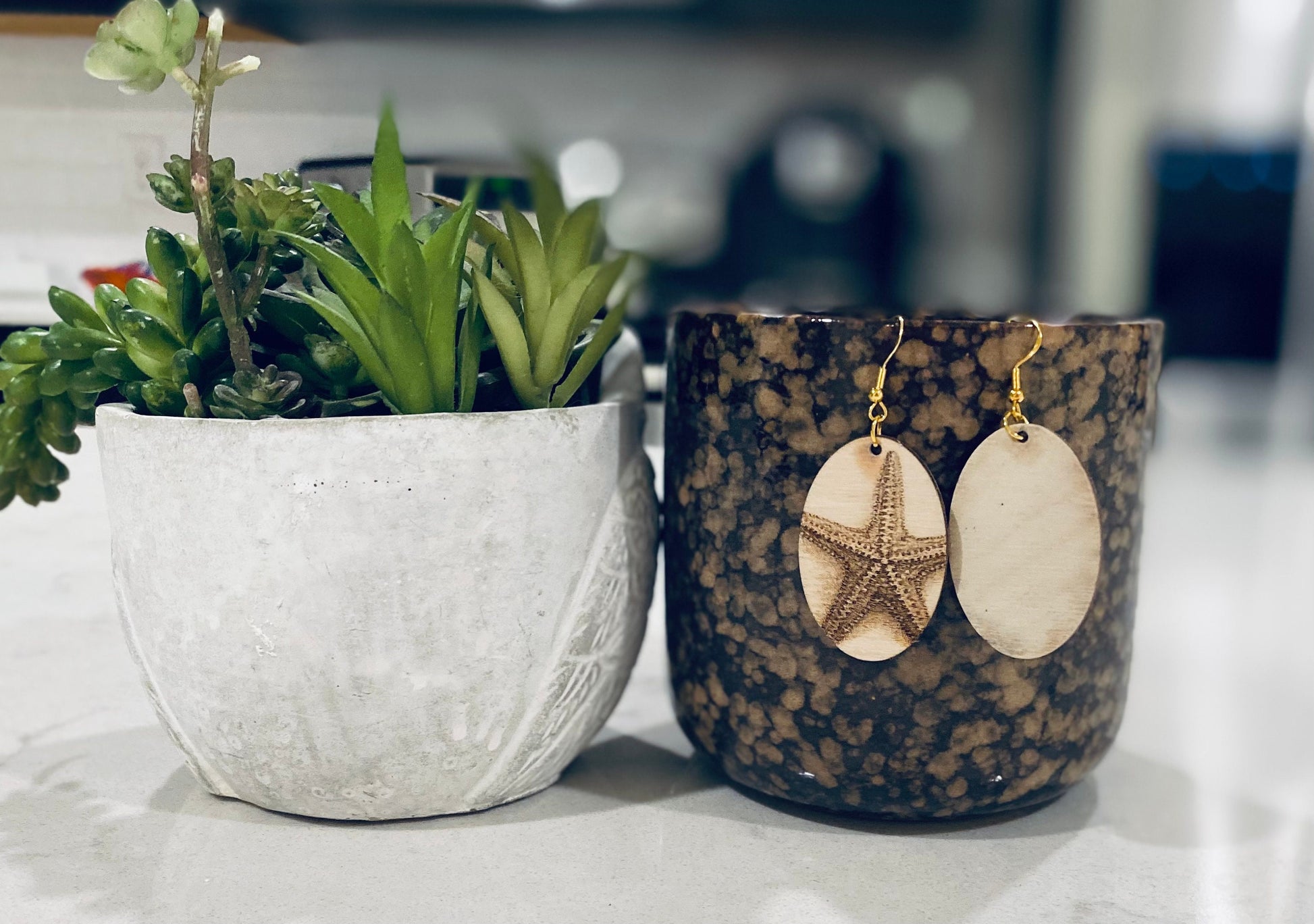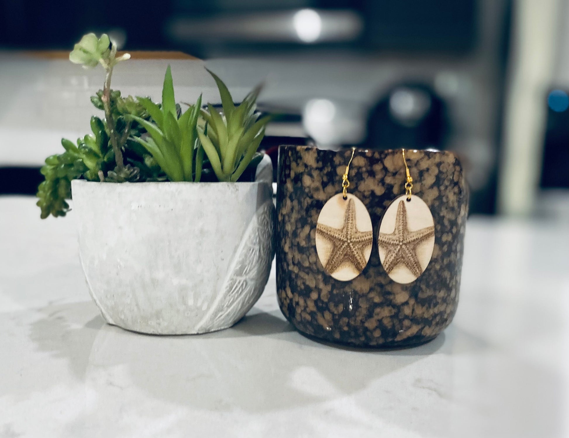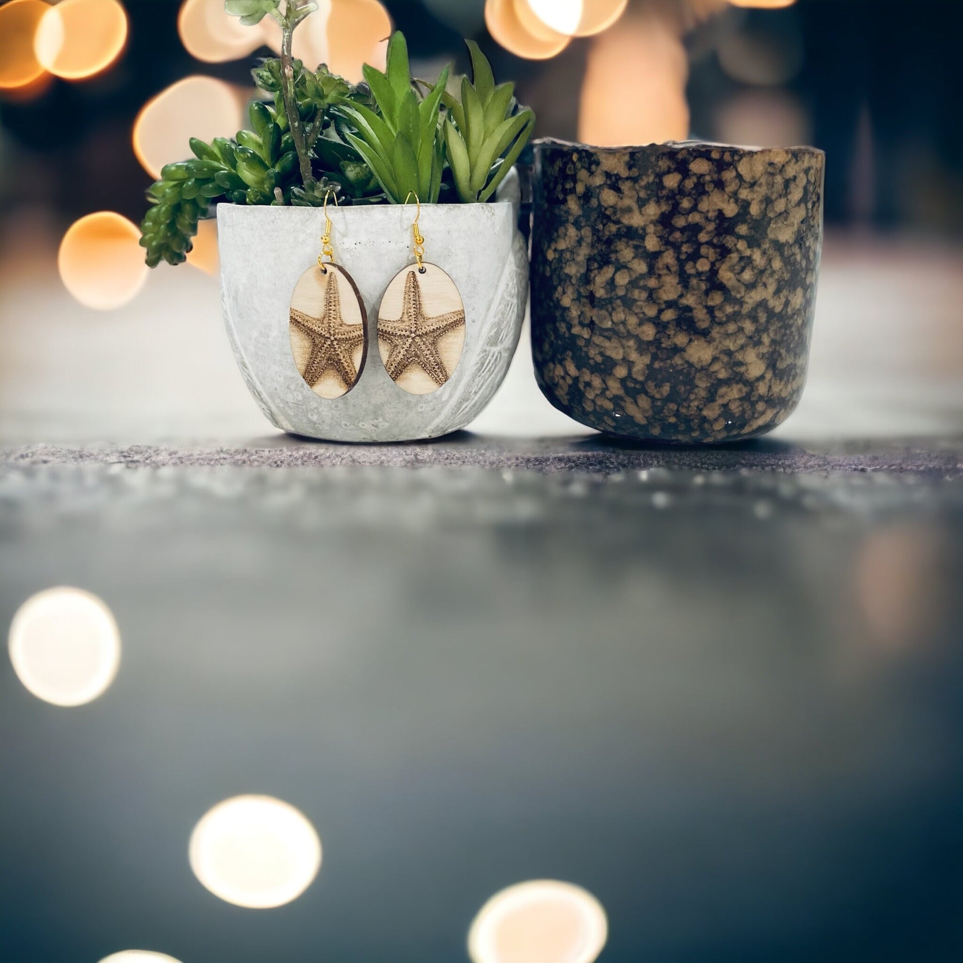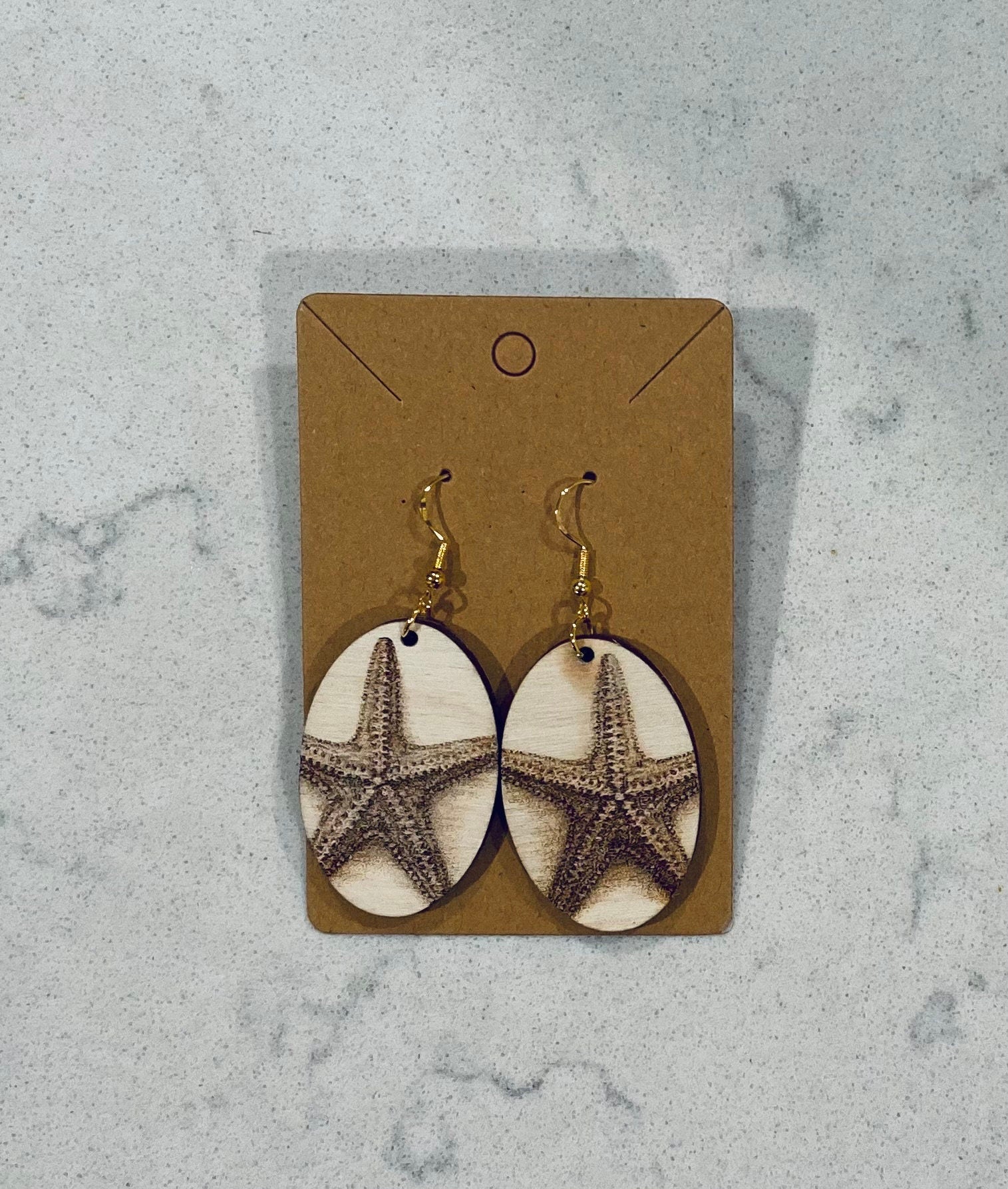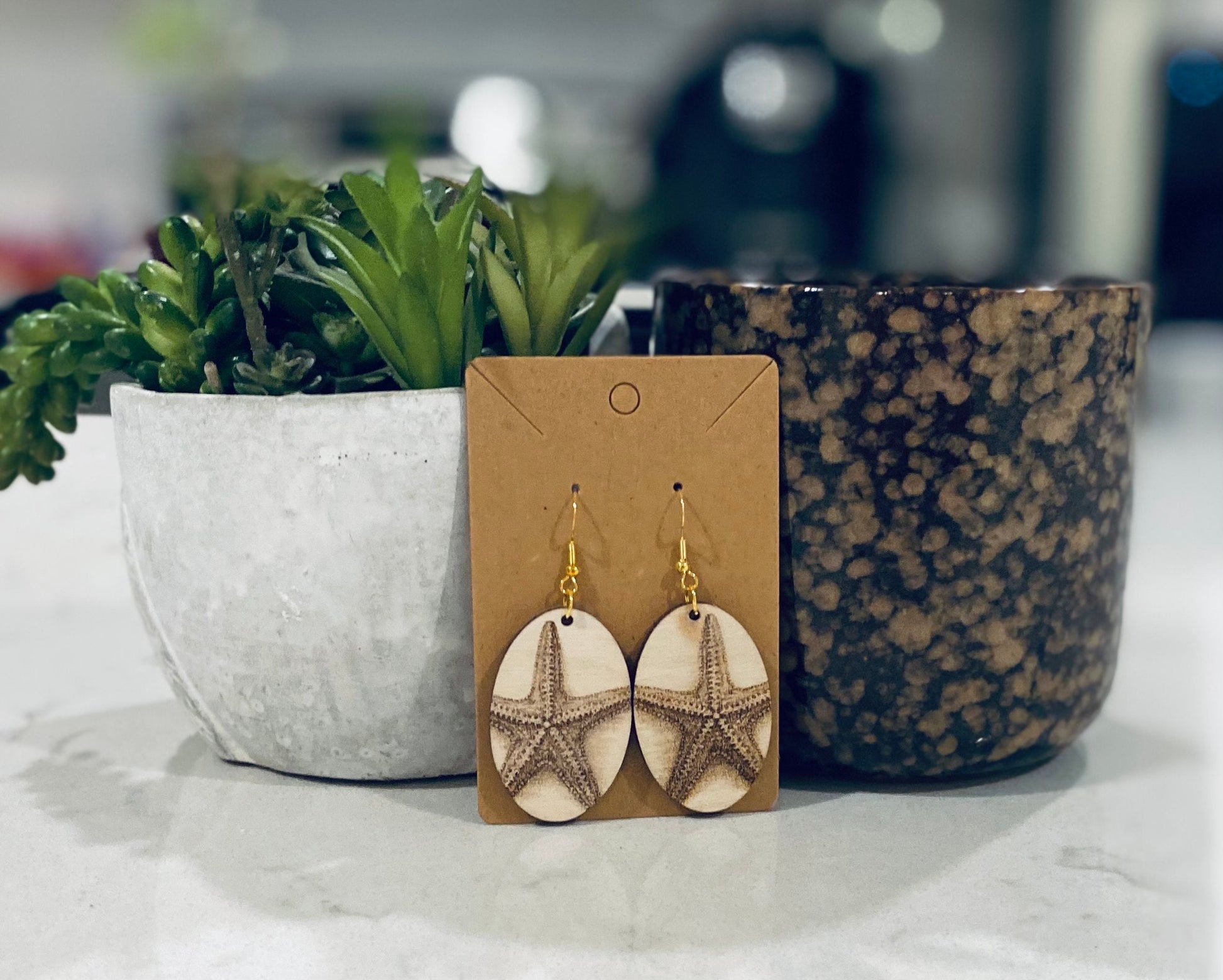 Laser Cut Birchwood Starfish Sea Life Earrings