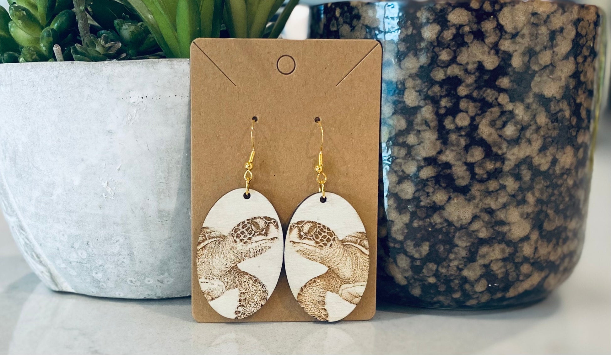 Add a touch of nature’s charm with these Laser Cut Birchwood Turtle Earrings.