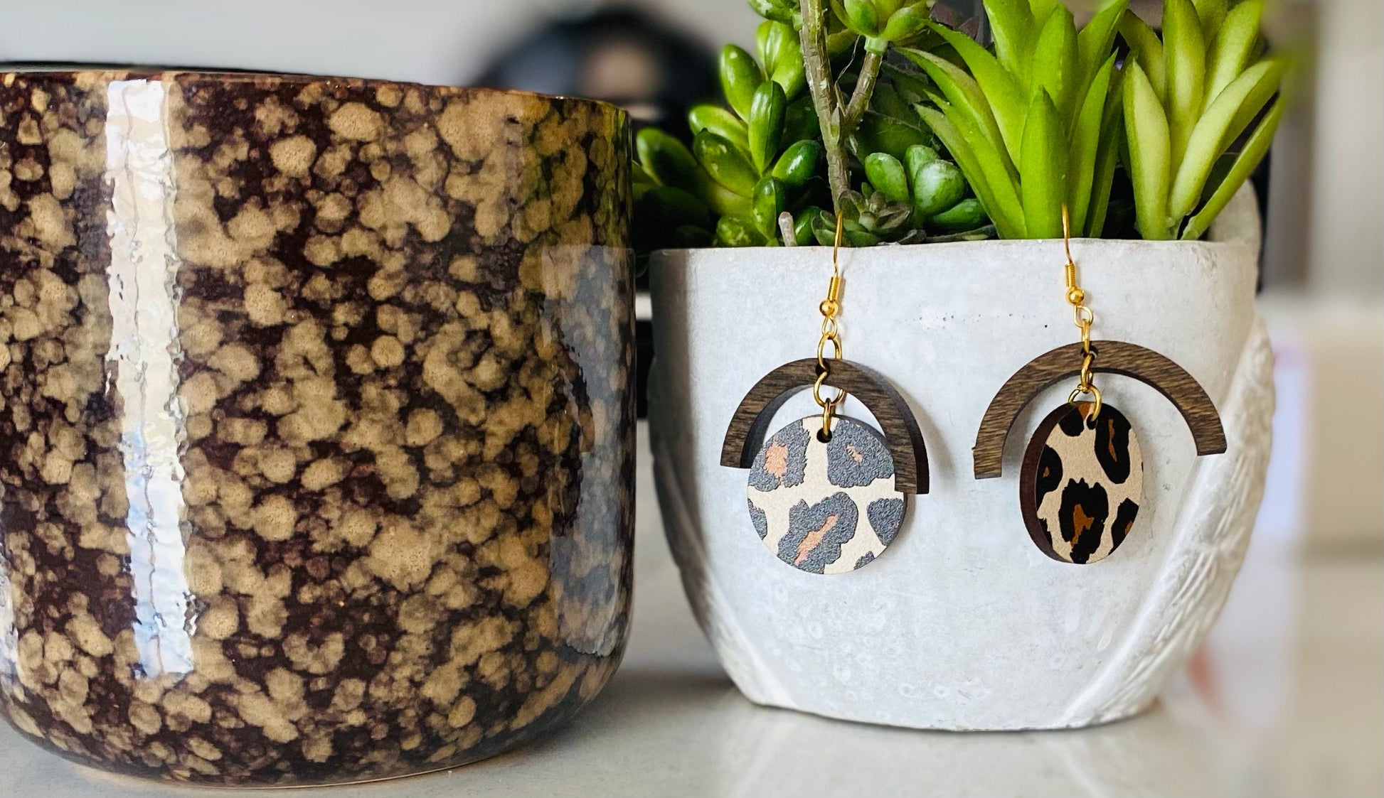 Make a bold statement with these Leopard Print Laser-Cut Dangle Earrings.